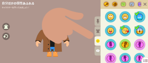 エモーションは画面左下の黄色い顔をタップすると出てきます。