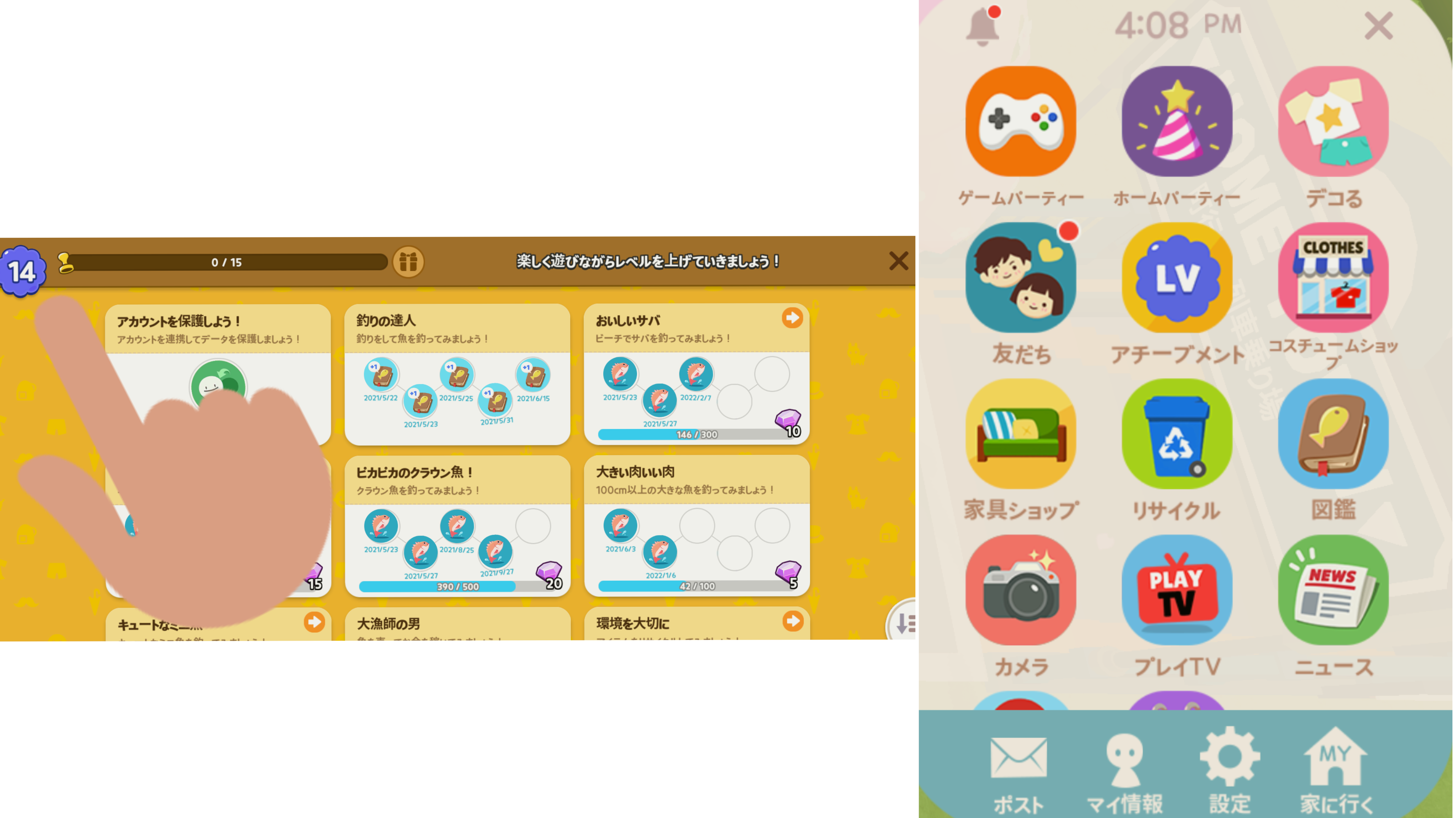 アチーブメントレベルが5以上で、さらにアカウント連携済みじゃないと送れないよ!! アカウント連携について詳しくは【一緒に遊ぼう】アカウント連携とは? を確認!