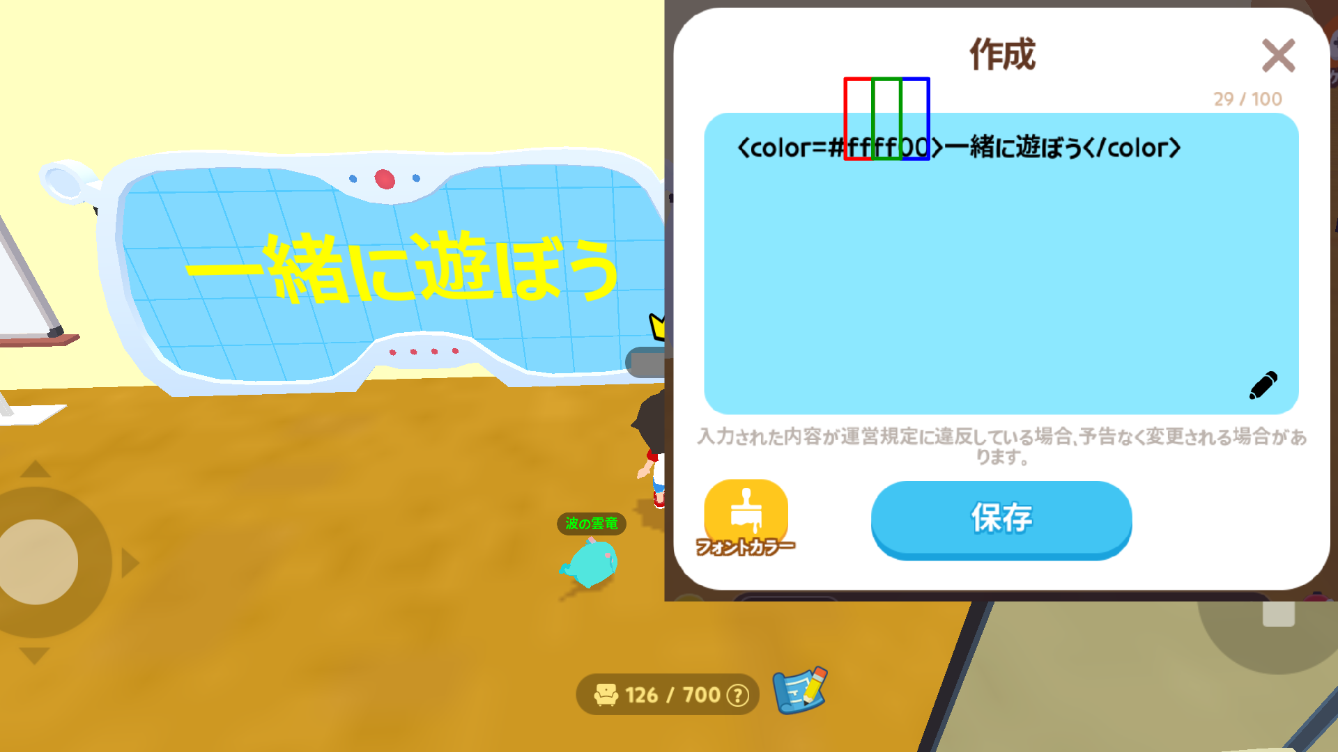 【一緒に遊ぼう】文字コマンドHTMLで看板の文字・色を変える方法