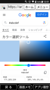 Googleでカラーコードを検索すると、どんな色になるか確認できます。