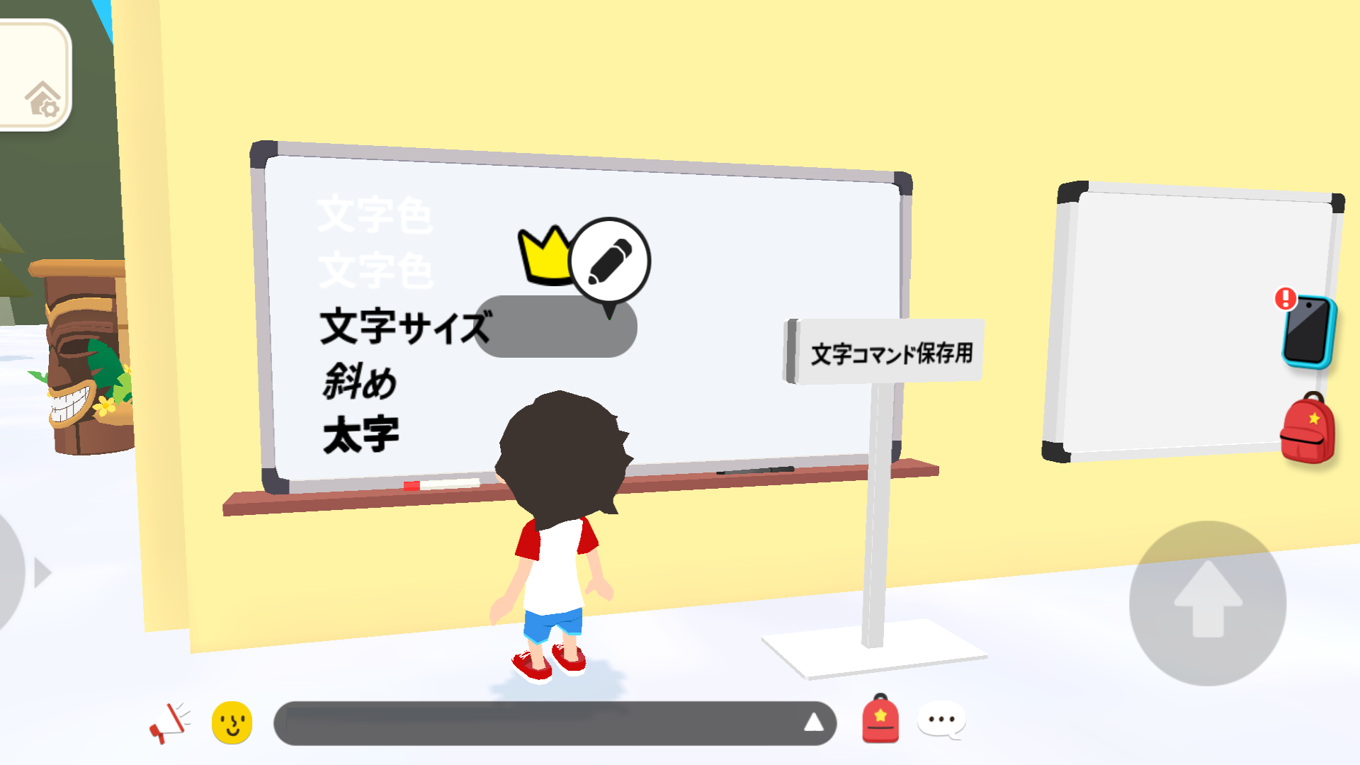 の3つが使えます。値段が24宝石する「ホワイトボード」は飾りです。何も打てません。