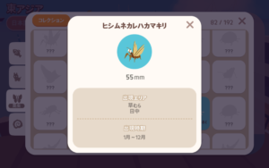 上記の他、虫取り網で捕獲するイベントアイテムもあります。
