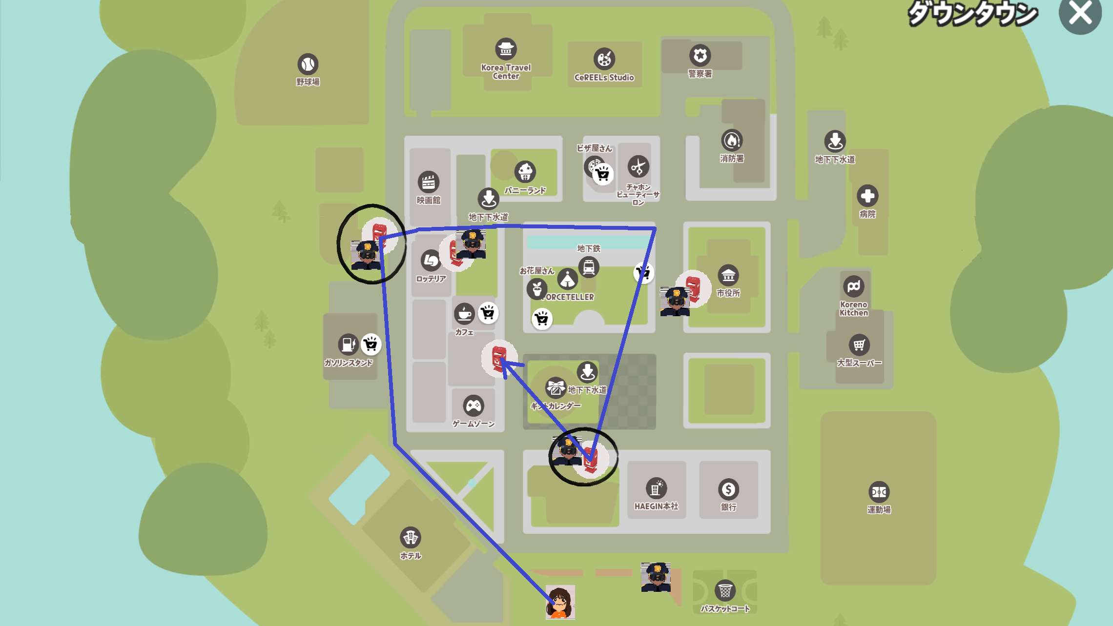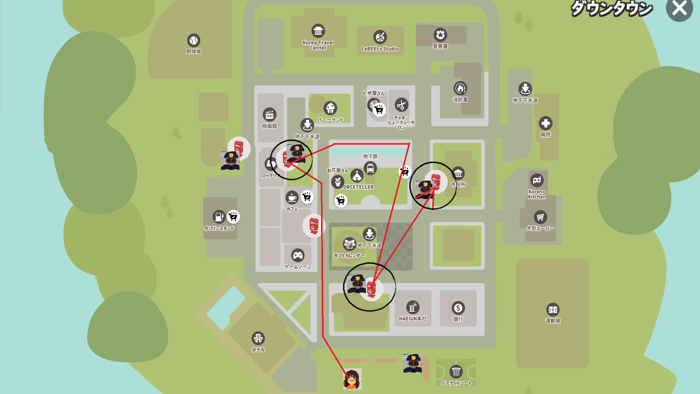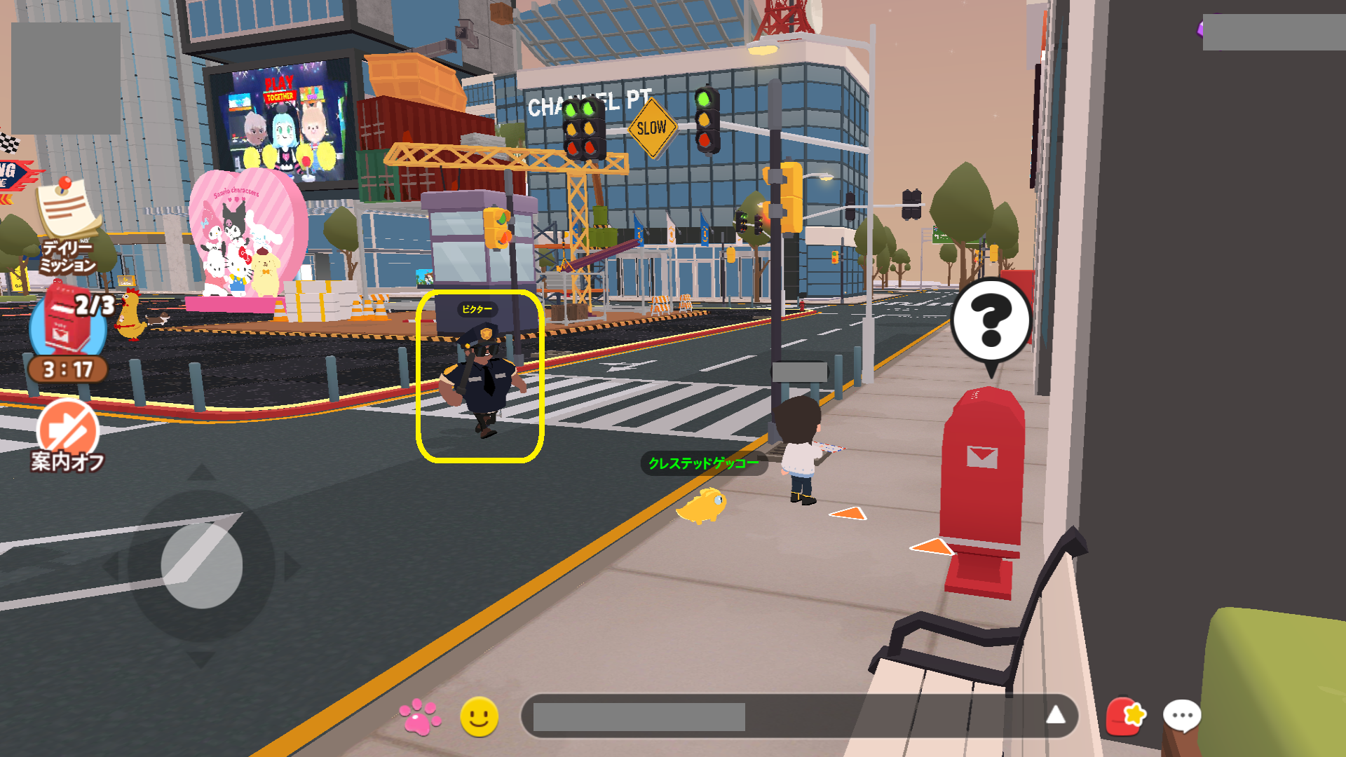 敵役は「追っかけ」と「ポスト周辺の見張り」がいて、どちらに捕まってもクエスト失敗です。