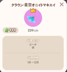 ![]() | おしゃれな黄金コイ | 池/ファッションモール/マイホーム/プール/ダウンタウン(噴水)/ビーチリゾート(池)/イグルー/離島(池) | 一日中 | 中 |