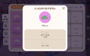 ![]() | 突然変異・白いリーフィーシードラゴン | 深い海/灯台/ビーチリゾート(沖)/ビーチリゾート(難破船)/ビーチリゾート(深海)/ビーチリゾート(マイホーム)の海/サンゴエリア | 一日中 | 中 |