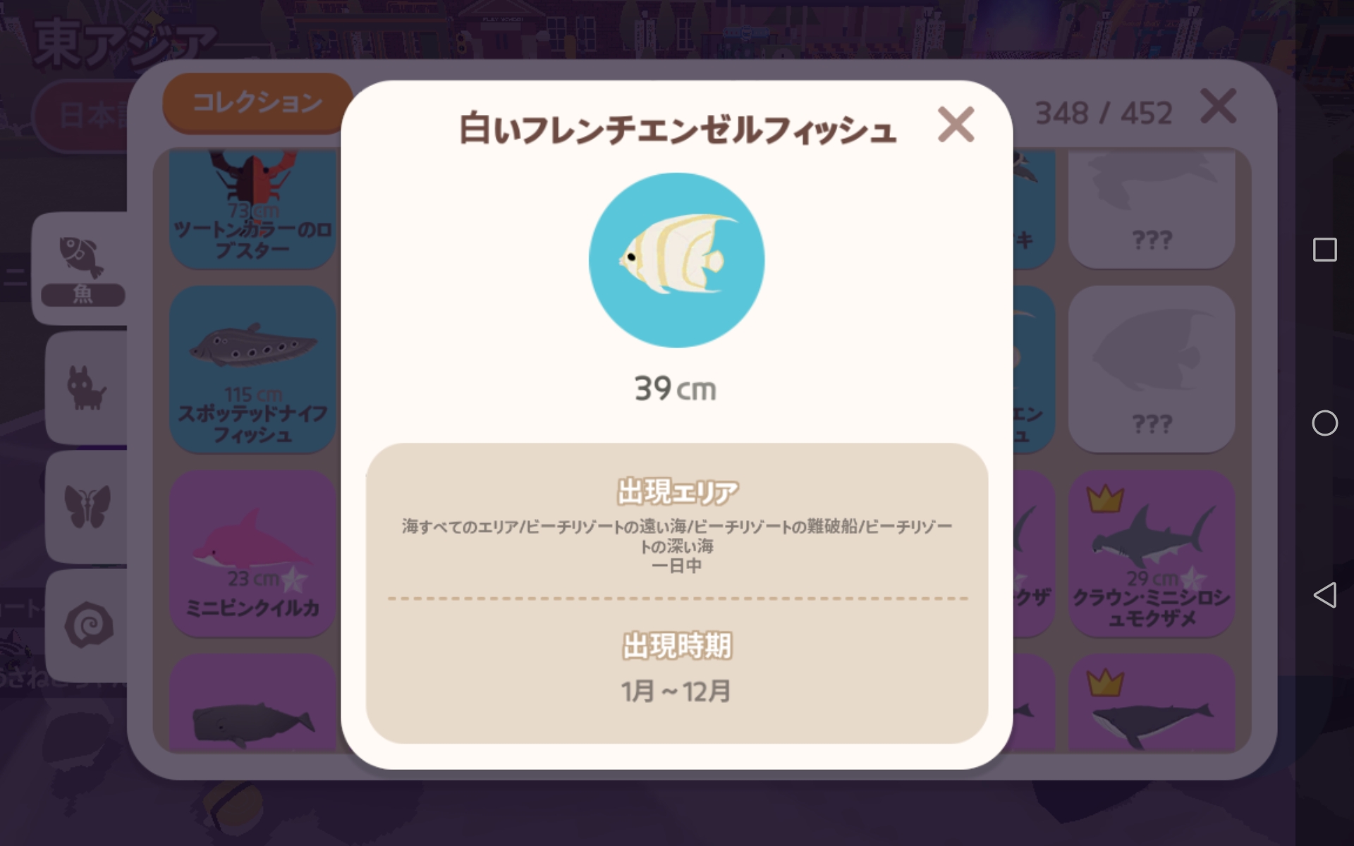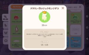 ![]() | 突然変異・白いフレンチエンゼルフィッシュ | すべての海/ビーチリゾート(沖)/ビーチリゾート(難破船)/ビーチリゾート(深海)/ビーチリゾート(マイホーム)の海 | 一日中 | 中 |