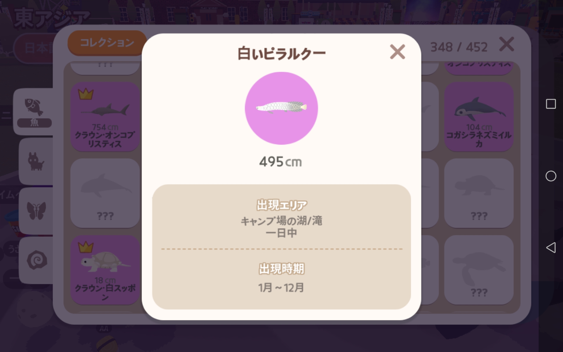 ![]() | ナマズ | ダイナソーパーク/滝/池/ビーチリゾート(池)/離島(池)/Celestial | 一日中 | 大 |