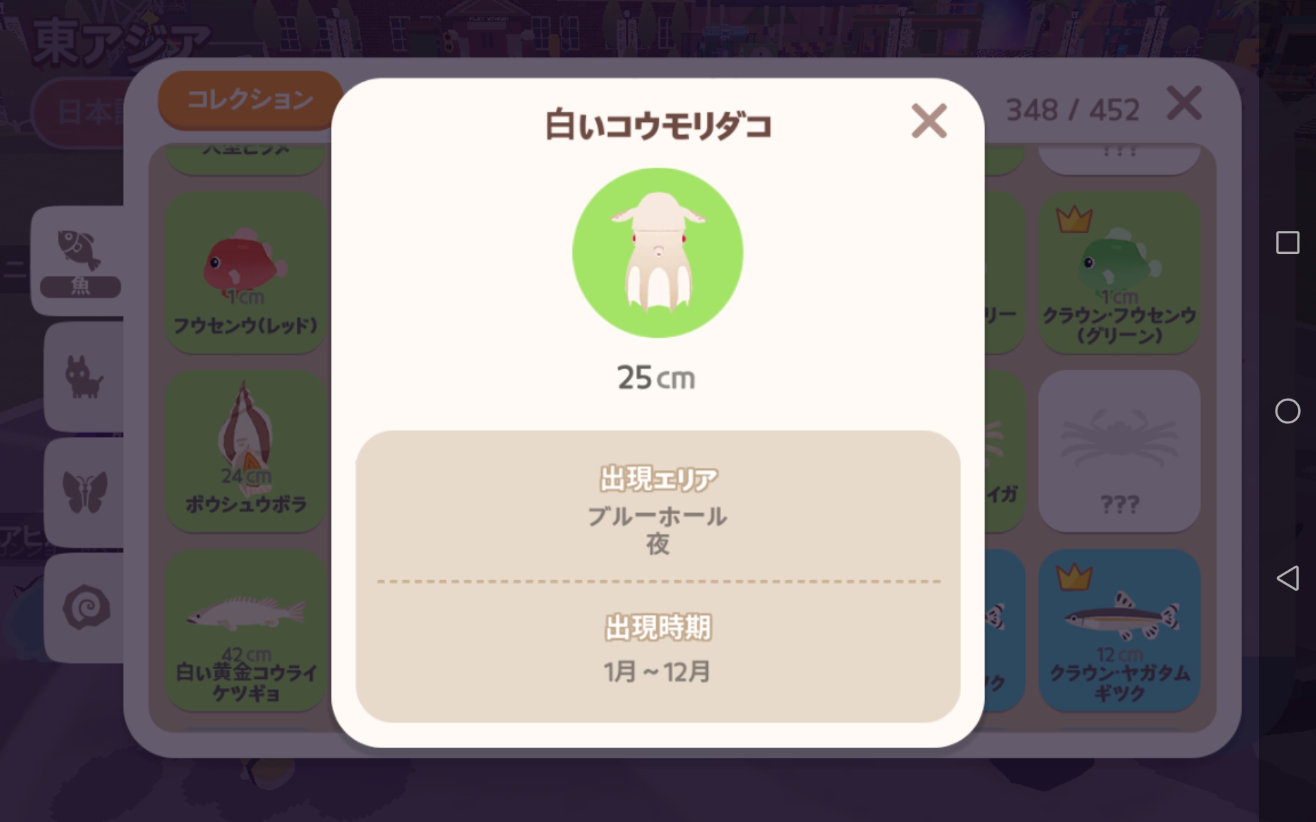 ![]() | マダコ | 海辺の仕掛け網(広場)/海辺の仕掛け網(ビーチリゾート) | 一日中 |