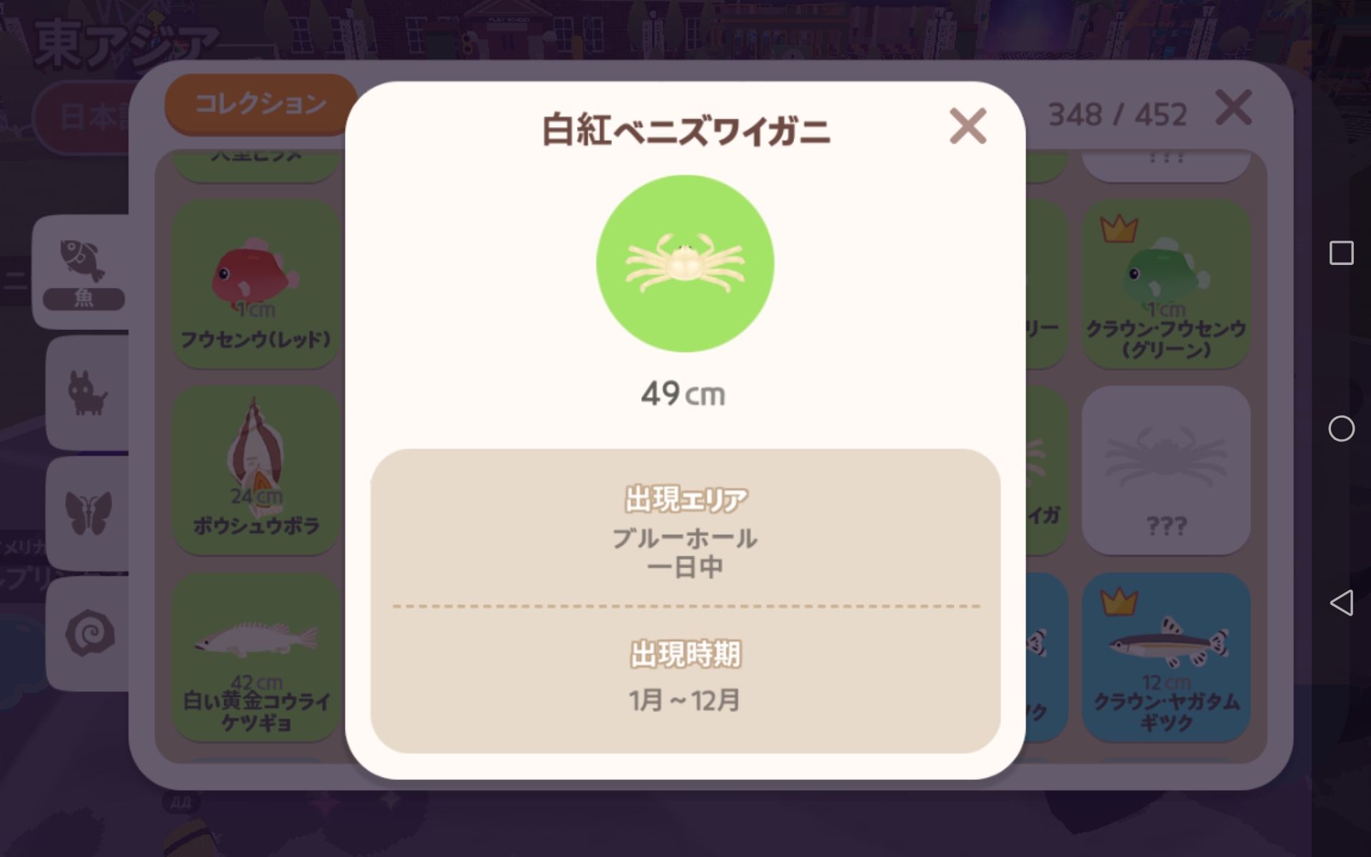 ![]() | ザリガニ | ダイナソーパーク/滝/池/ダウンタウン(すべてのエリア)/ビーチリゾート(池)/ビーチリゾート(プール)/マイホーム(プール)/Celestial | 一日中 | 小 |