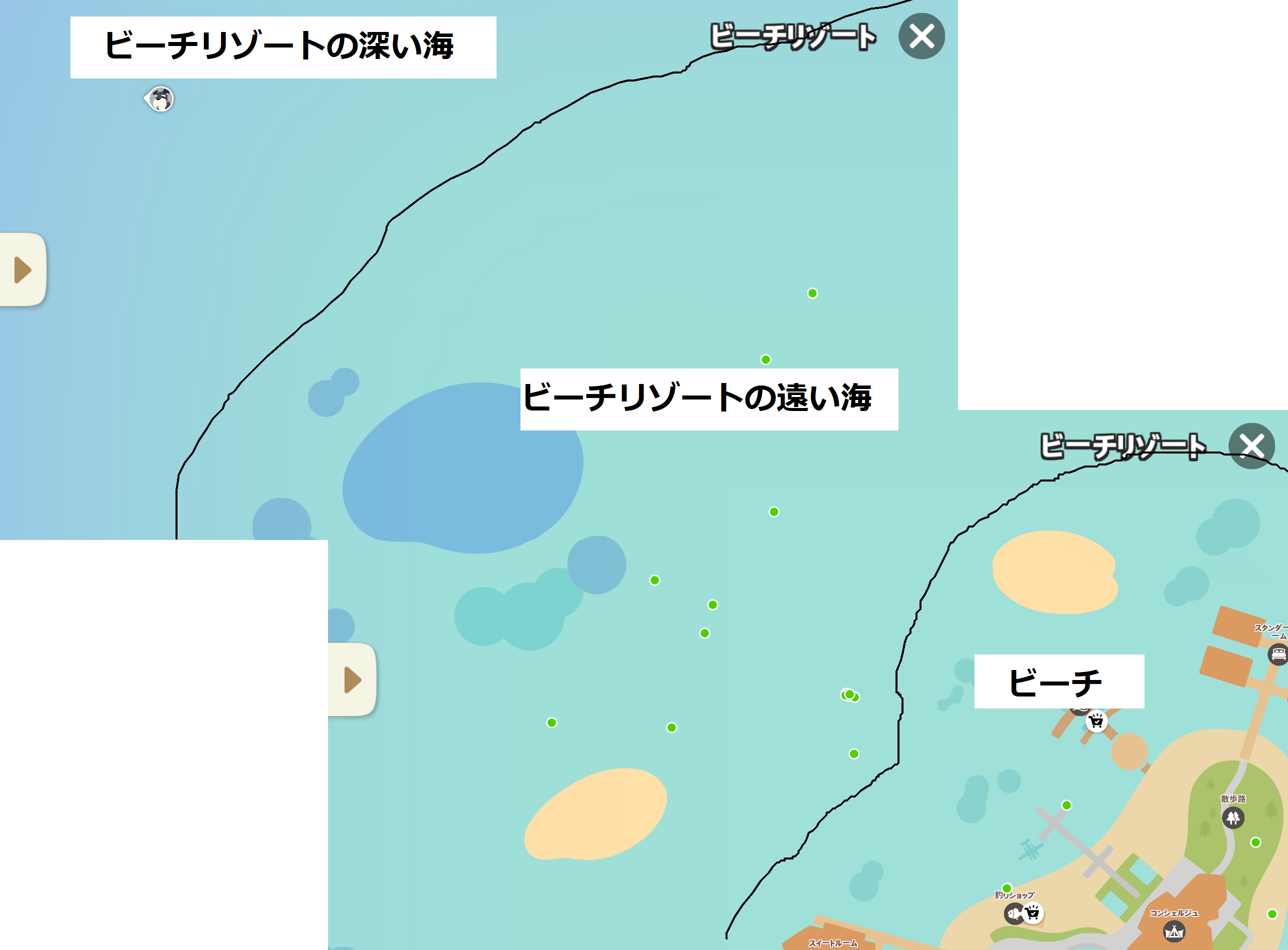| 3 | ![]() 魚の骨 | 広場の池/ダイナソーパーク(湖)/滝/ビーチリゾート(池)/イグルー | リサイクル | 中 |