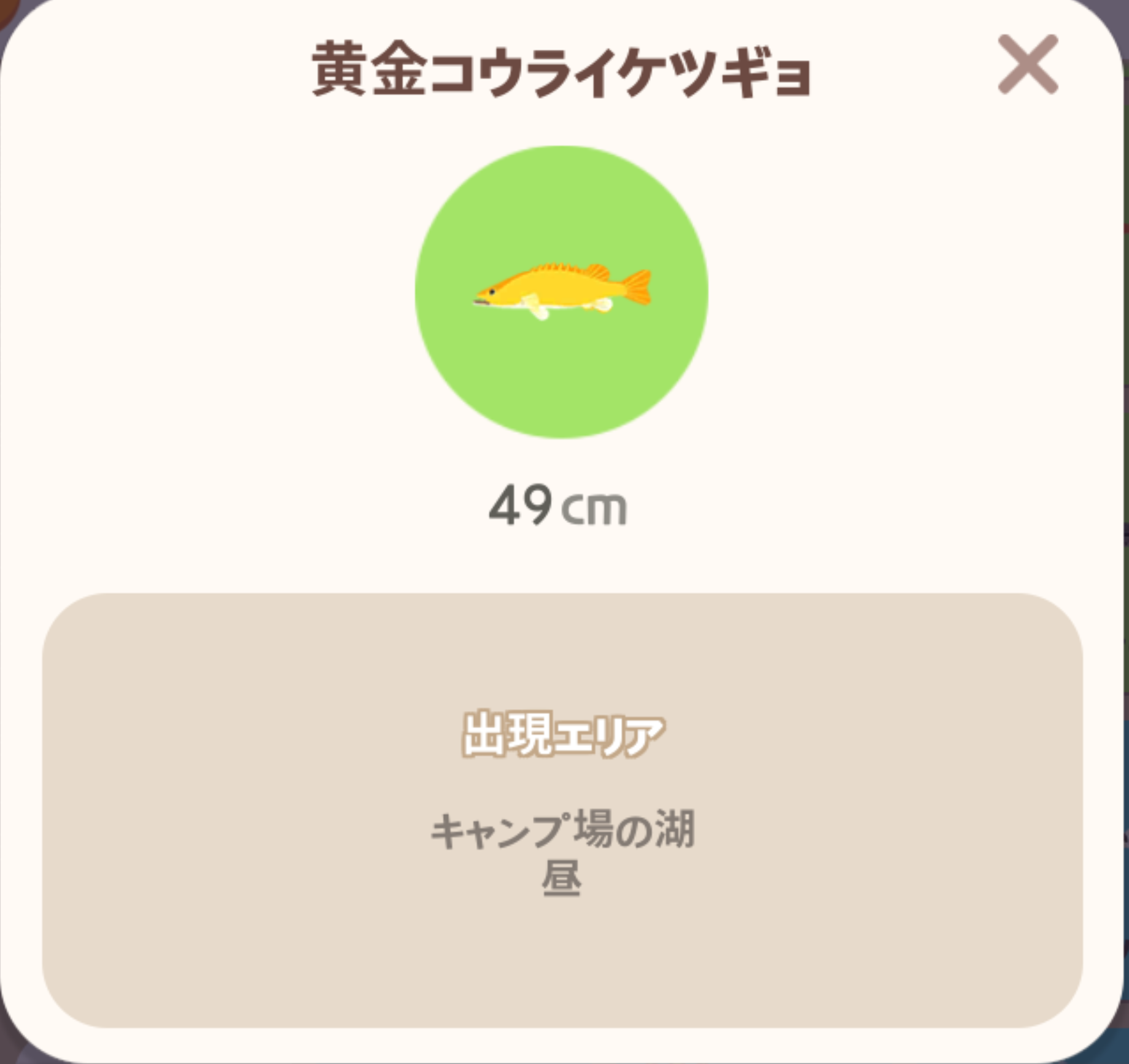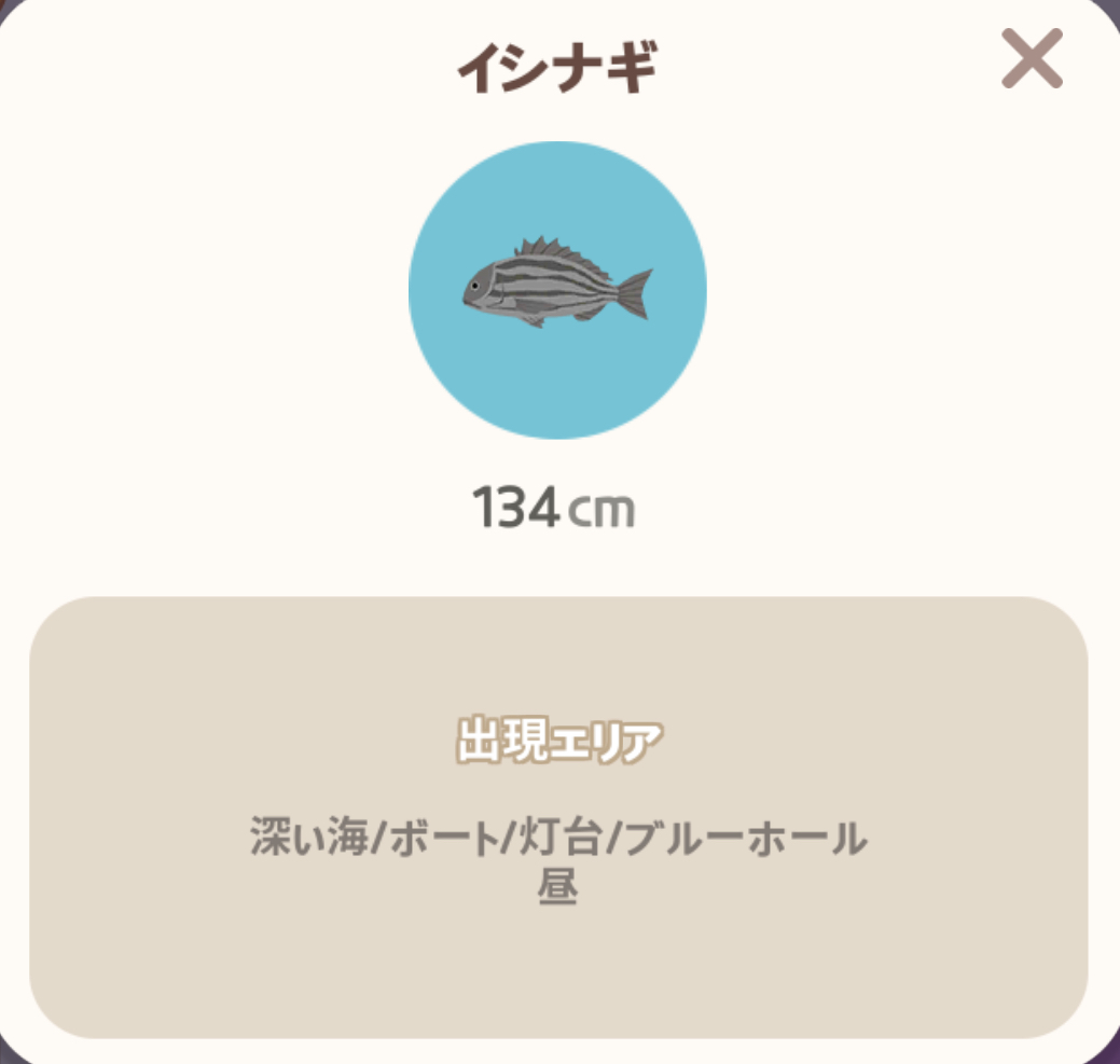 | 魚のアイコン | 魚の名前 | 場所 | 時間 |