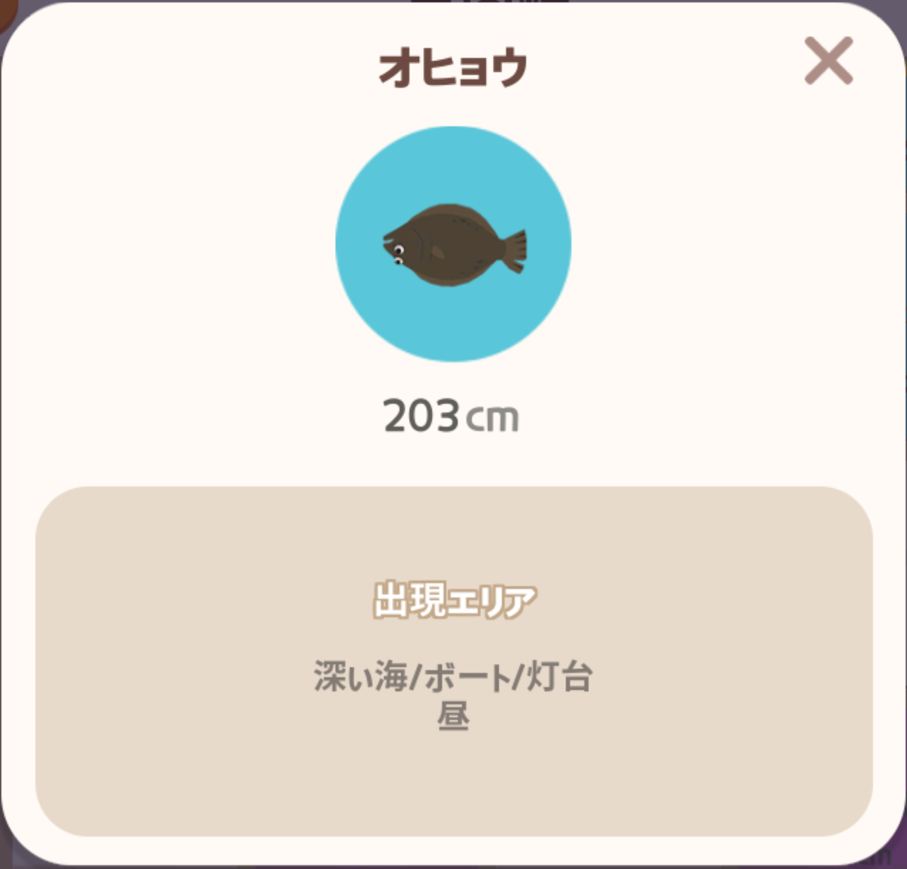 ![]() | ヒラメ | すべての海/ビーチリゾート(沖)/ビーチリゾート(難破船)/ビーチリゾート(深海)/マイホーム(海) | 一日中 | 大 |