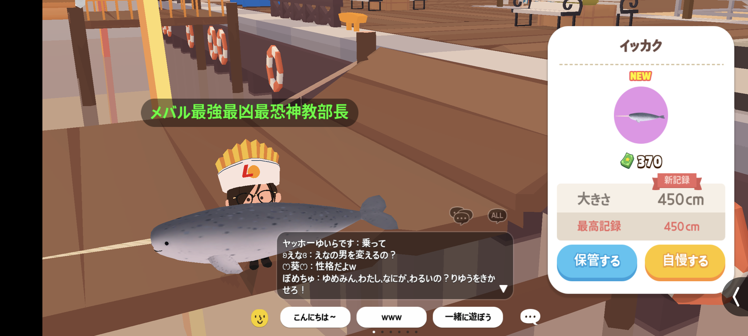 ![]() | アユ | 池/ダイナソーパーク(湖)/滝/プール/ファッションモール/マイホーム/ビーチリゾート(池)/イグルー | 一日中 | 小 |