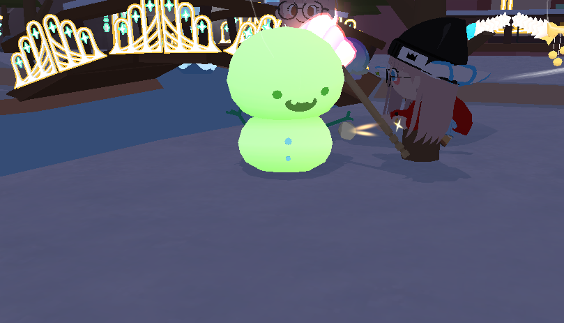 広場、キャンプ場、ホームタウンに出現する雪だるまをツルハシで叩くと「ランダムボックス」を入手します。