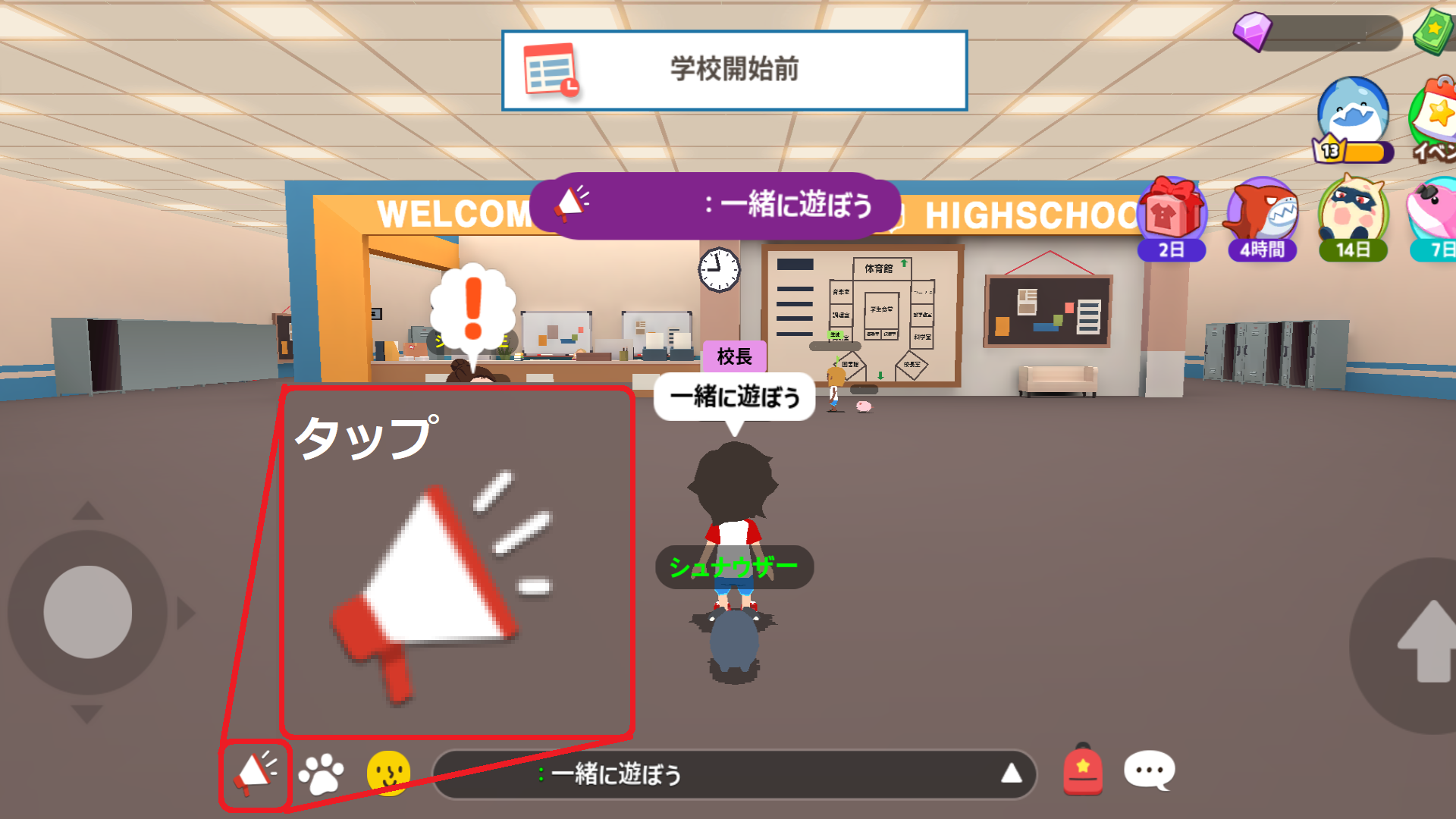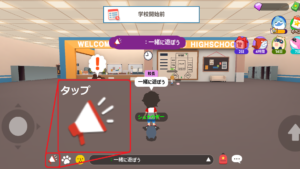学校内で校長の名札を付けると、メガホンアイコンが出ます。
