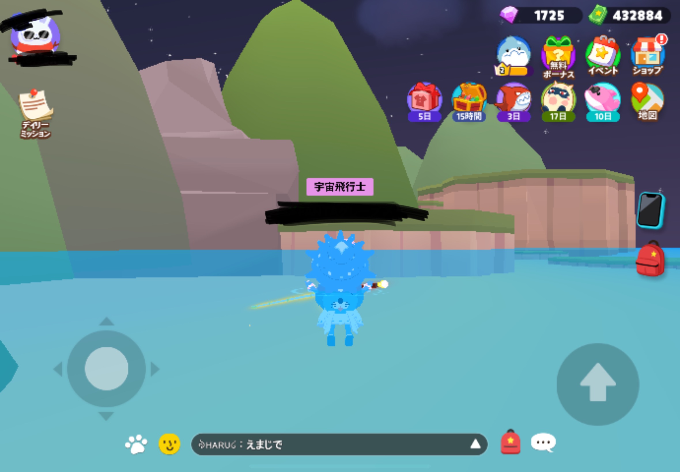 現実時間の朝9時以降にログインの上、錠🔒がついていないスタンプをタップすると報酬を受け取れます。