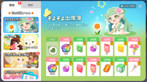 花の種について、ファームコインと宝石で買う際の価格が変わりました。価格調整に伴い、補償として 25万枚のファームコインを受け取れます。補償を受け取るには 2026年 3月 2日朝 9時までにログインする必要があります。なお調整前に花の種を買っていなくてもファームコインを受け取れます。