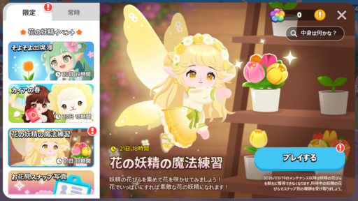 花の種について、ファームコインと宝石で買う際の価格が変わりました。価格調整に伴い、補償として 25万枚のファームコインを受け取れます。補償を受け取るには 2026年 3月 2日朝 9時までにログインする必要があります。なお調整前に花の種を買っていなくてもファームコインを受け取れます。