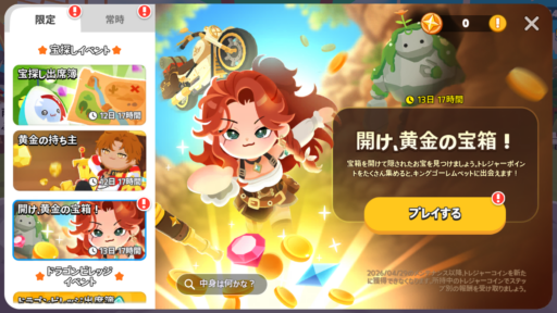 現実時間の朝 9時以降にログインの上、錠🔒がついていないアイテムをタップすると報酬を受け取れます。