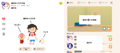 操作キャラクタの名前や、自己紹介などを設定できます。
