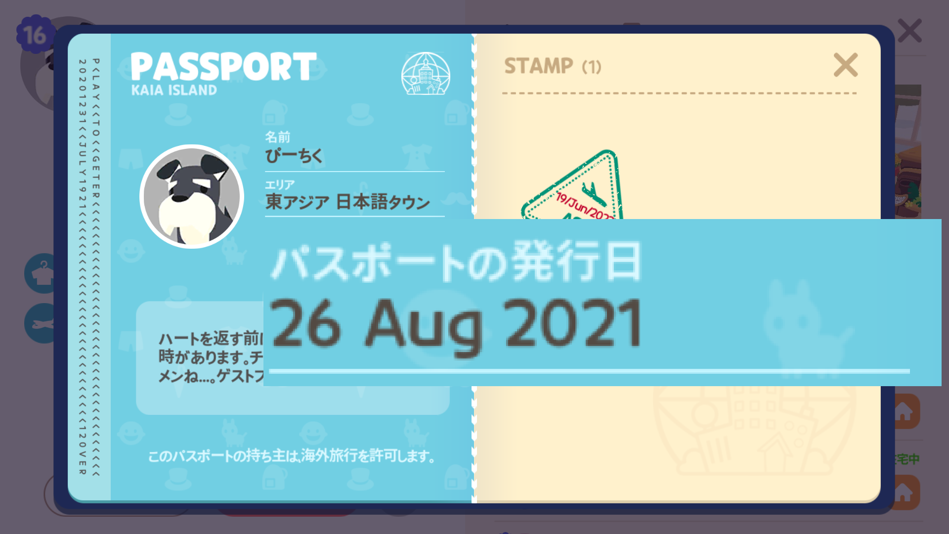 ゲーム内のスマホ→マイ情報→パスポートの「パスポートの発行日」で確認できます。「日、月、年」の表記です。