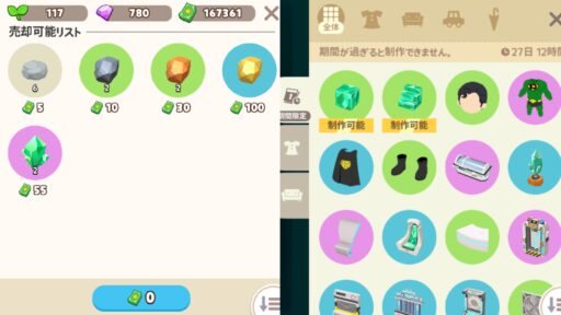 売る、もしくはアイテムを製作できるよ!!
