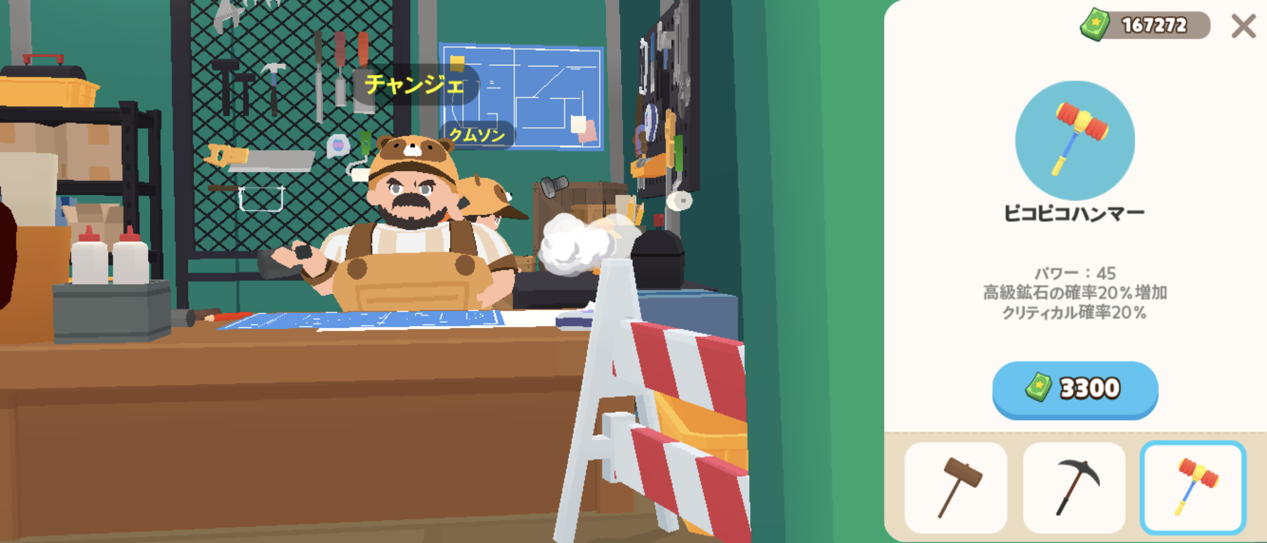 ![]() 木のハンマー | 420スター | 20 | 200スター | 30 | |||