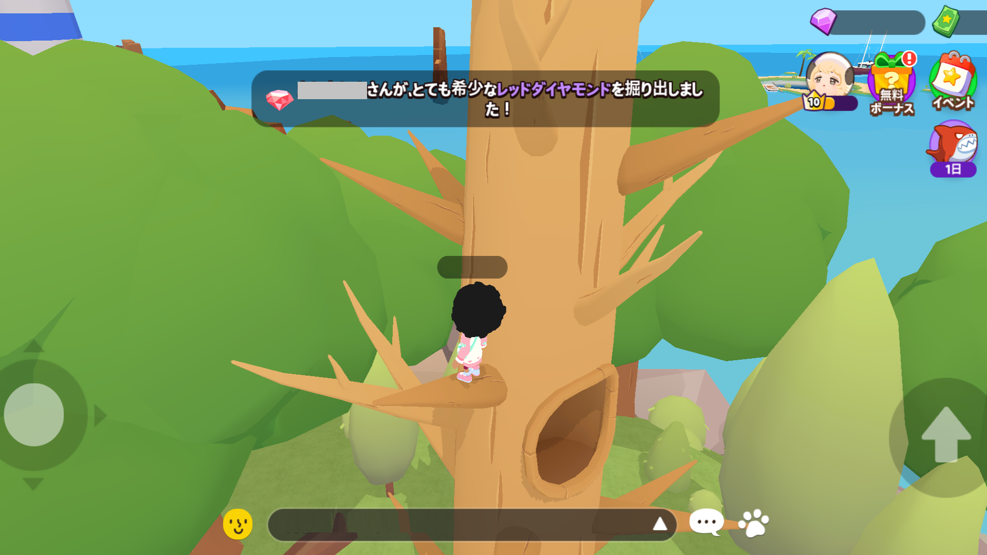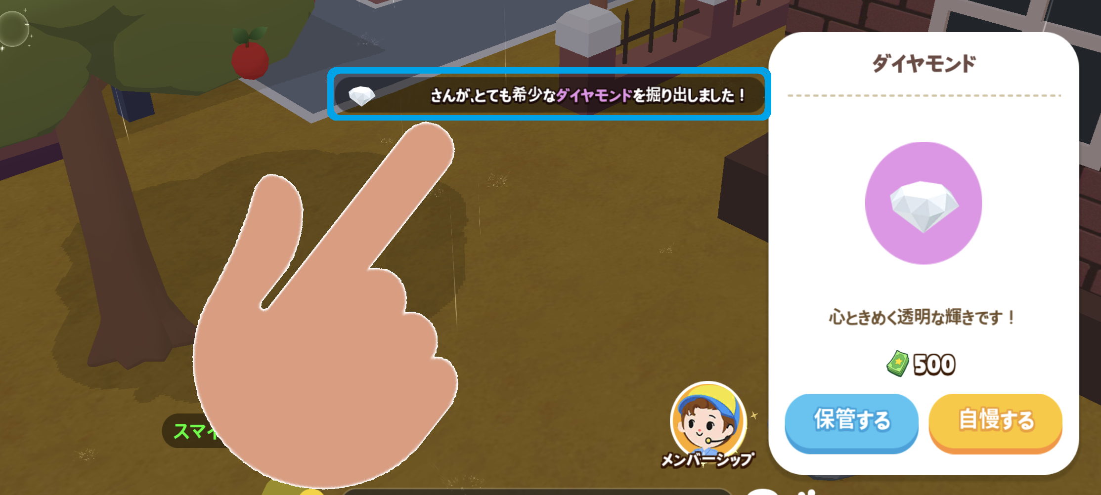 ダイヤモンド・ブルーダイヤモンド・レッドダイヤモンドを掘り当てると、全体アナウンスが出ます。