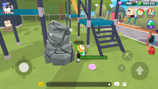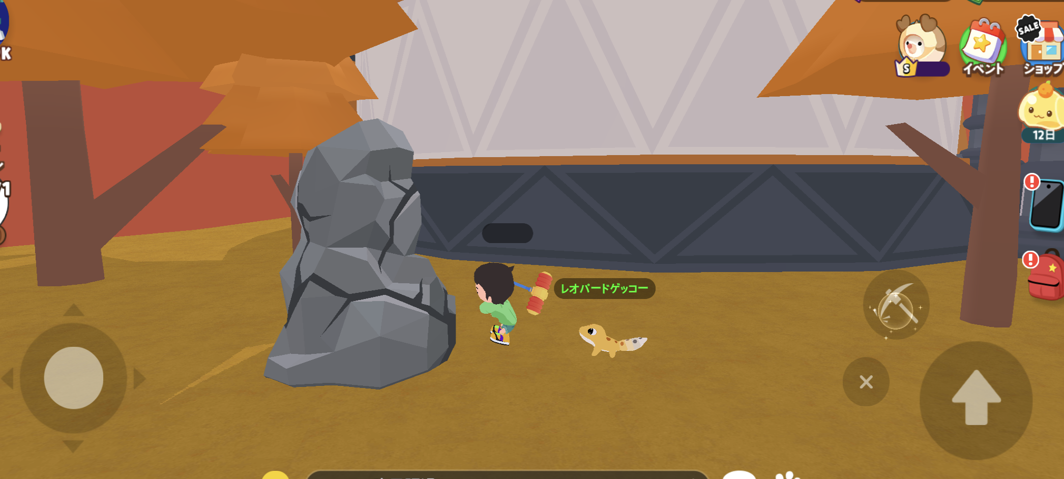 キラキラがどんな感じかは、ダイナソーパークでハンマーを売っているNPCの石をご覧ください。