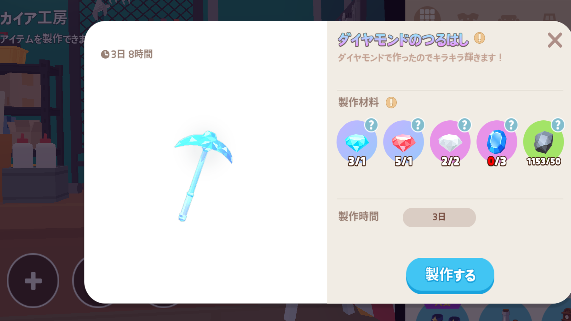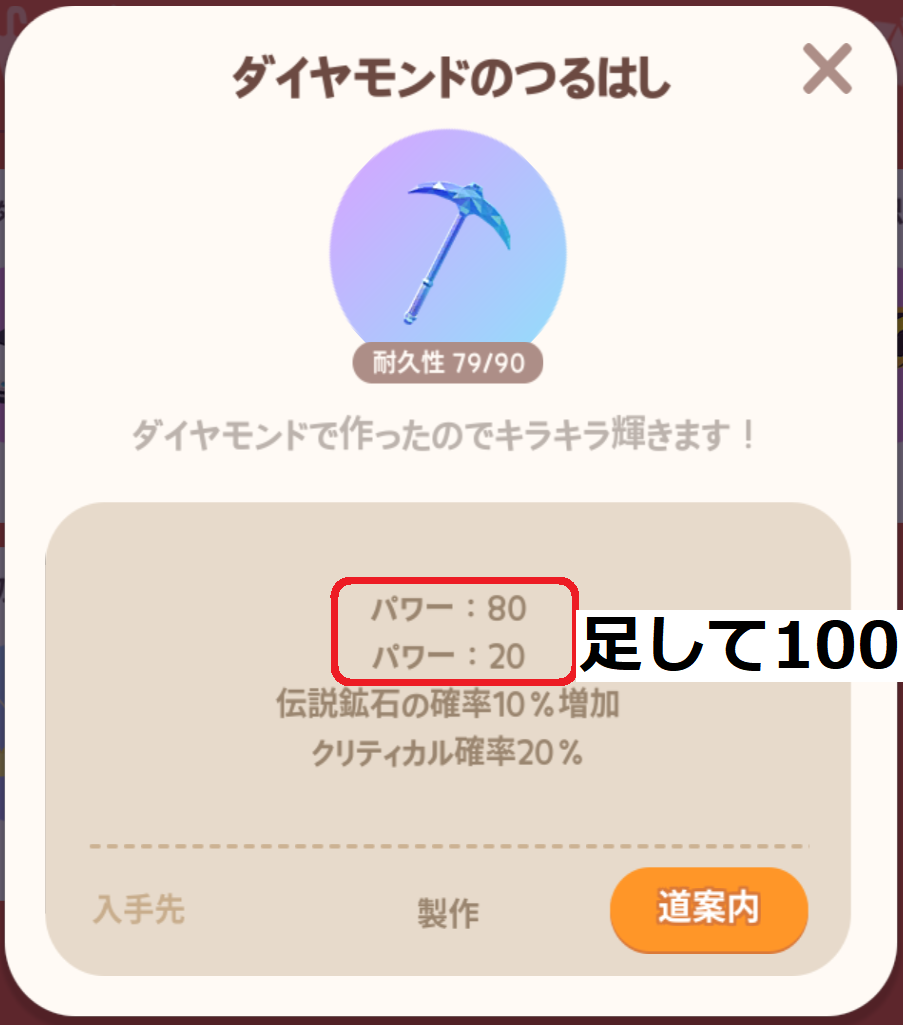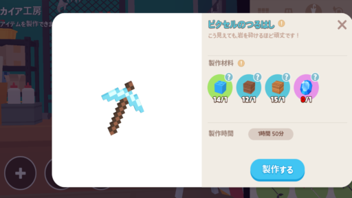 ![]() ダイヤモンドのつるはし | 製作 | 90 | 1400スター | 100 | 20% | +10% |